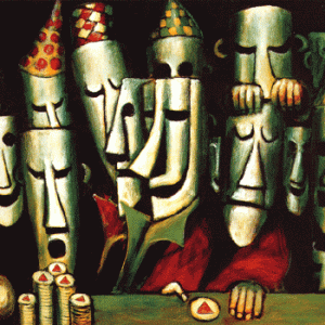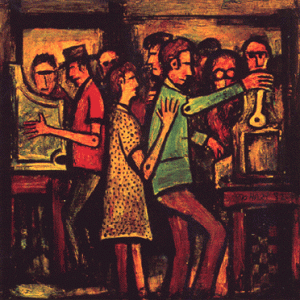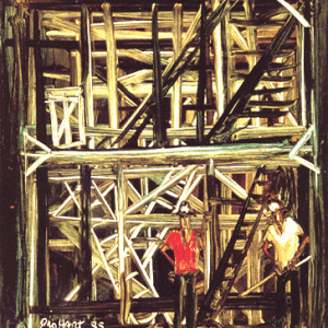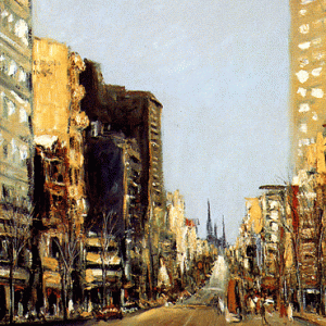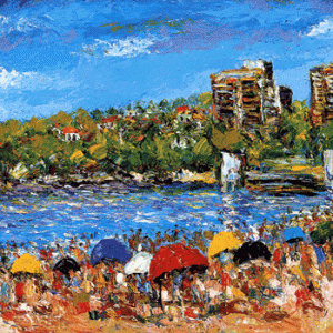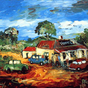 A survey of his work will reveal a passionate interest in both the making and philosophy of Art. In the broadest sense, Pros’ work can be divided into two main categories; Formal and Narrative. At a formal level Pro is motivated by the aesthetics of a painting, employing conventions such as colour, shape, form, light and pattern that help to establish a sense of order within the picture plane. At a narrative level, Pro paints subjects such as Country Race Meetings, Picnics, Street Scenes and Portraits to communicate an idea to the viewer. Figurative work is based on keen observation of life in the outback town of Broken Hill.