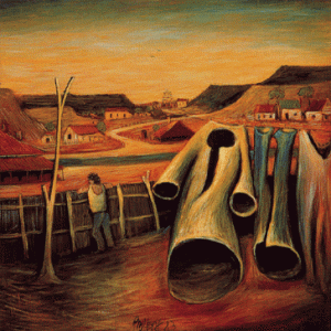 The art of Pro Hart is informed by his accumulated life experiences, from his childhood living in the bush to working and living in the mining town of Broken Hill.
